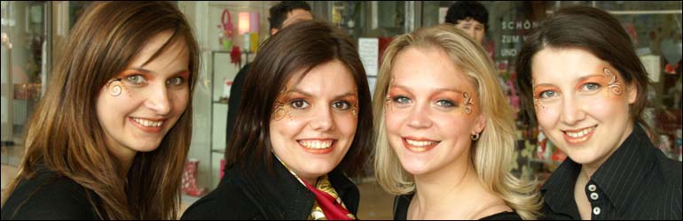 Auf Wunsch wird entsprechend eines Mottos geschminkt, wie z.B. Musical Cat, Rockkonzert, Halloween, eleganter Galaabend. |