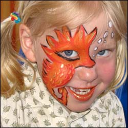 Jedes Kind oder seine Eltern können vor Ort, aus einer bereitliegenden Mappe mit einer gossen Ansammlung an Schmink-Motiven, von Prinzessin, Clown, Spiderman bis zu kunstvollen Ornamenten und Masken, ein fantasievolles Schminkgesicht selbst auswählen, das in nur 1 bis maximal 3 Minuten je nach Motiv fertig ist.