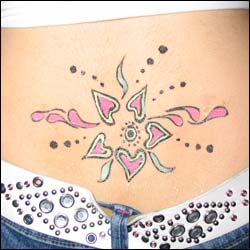Für 3-Tage-Tattoo´s verwende ich eine spezielle, hautfreudliche Tattoo-Farbe, die schnell trocknet, farbintensiv und bis zu 72 Stunden auf der Haut hält und auf Wunsch mit Öl mühelos zu entfernen ist.